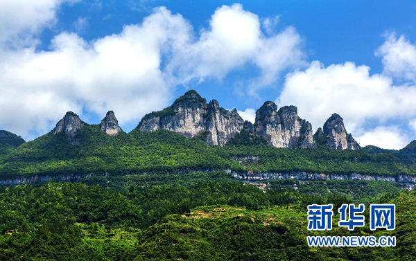 中国南方喀斯特二期获准列入世界遗产名录在广西环江毛南族自治县大才乡拍摄的喀斯特地貌(2011年7月24日摄)。 6月23日,以桂林喀斯特(广西)、施秉喀斯特(贵州)、金佛山喀斯特(重庆)和环江喀斯特(广西)组成的中国南方喀斯特第二期在第38届世界遗产大会上获准列入世界遗产名录。新华社发(王秀发 摄)